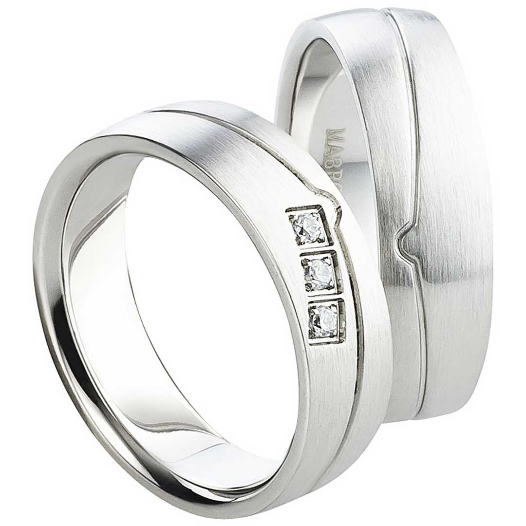 Traumhaft schöne Partnerringe mit drei Zirkonias, gratis Gravur und Glanzrille