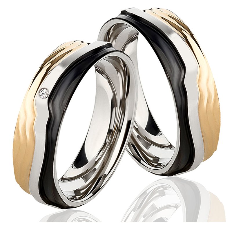 Edelstahlringe Tricolor mit Diamant