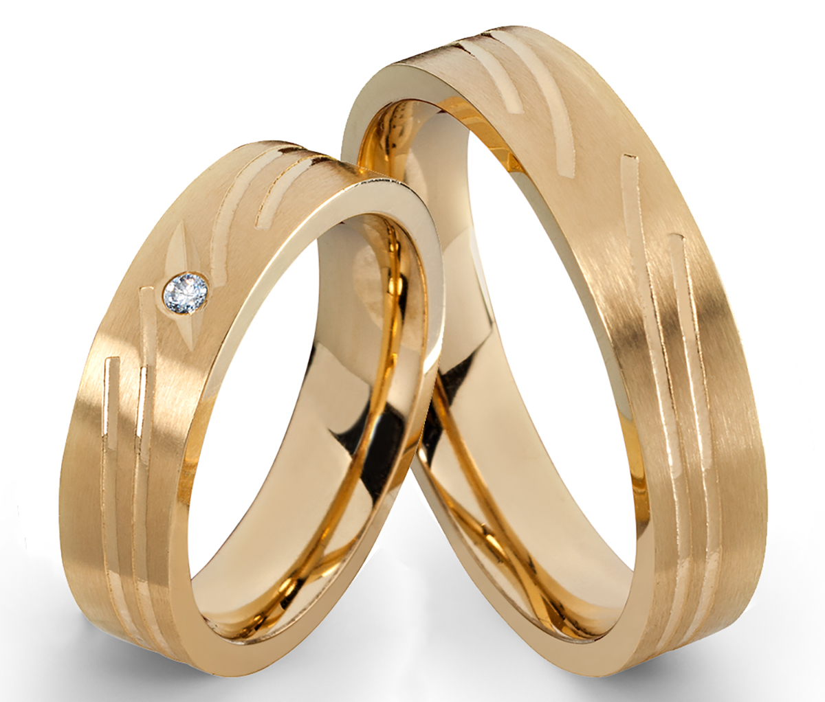 Diese beschichteten Ringe aus Edelstahl sind ein besonderer Blickfang. Die 6mm breiten und goldfarbiger Beschichteten Eheringe werden von einen kleinen Zirkonia im Damenring abgerundet. Die Ringe werden in einen Etui und innerhalb von Deutschland kostenlos geliefert. dazu gravieren wir Ihnen die RInge innen kostenlos. Der Text dazu kann frei gewählt werden und bis zu 30 Zeichen sein. Diese Ringe können als Partnerringe, Verlobungsringe, Freundschaftsringe oder aber auch als Eheringe getragen werden.