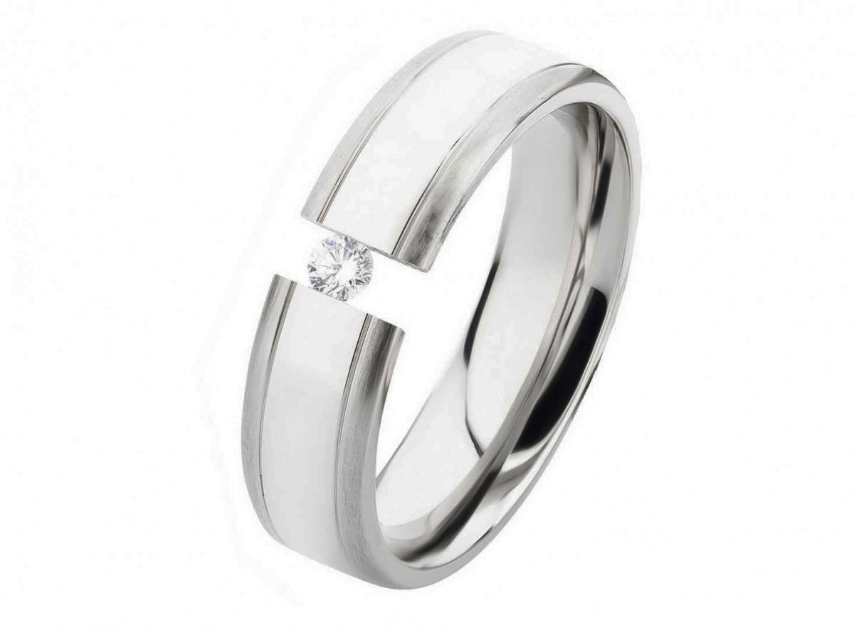 Entzückende Edelstahlringe E048 mit Zirkonia und Gravur