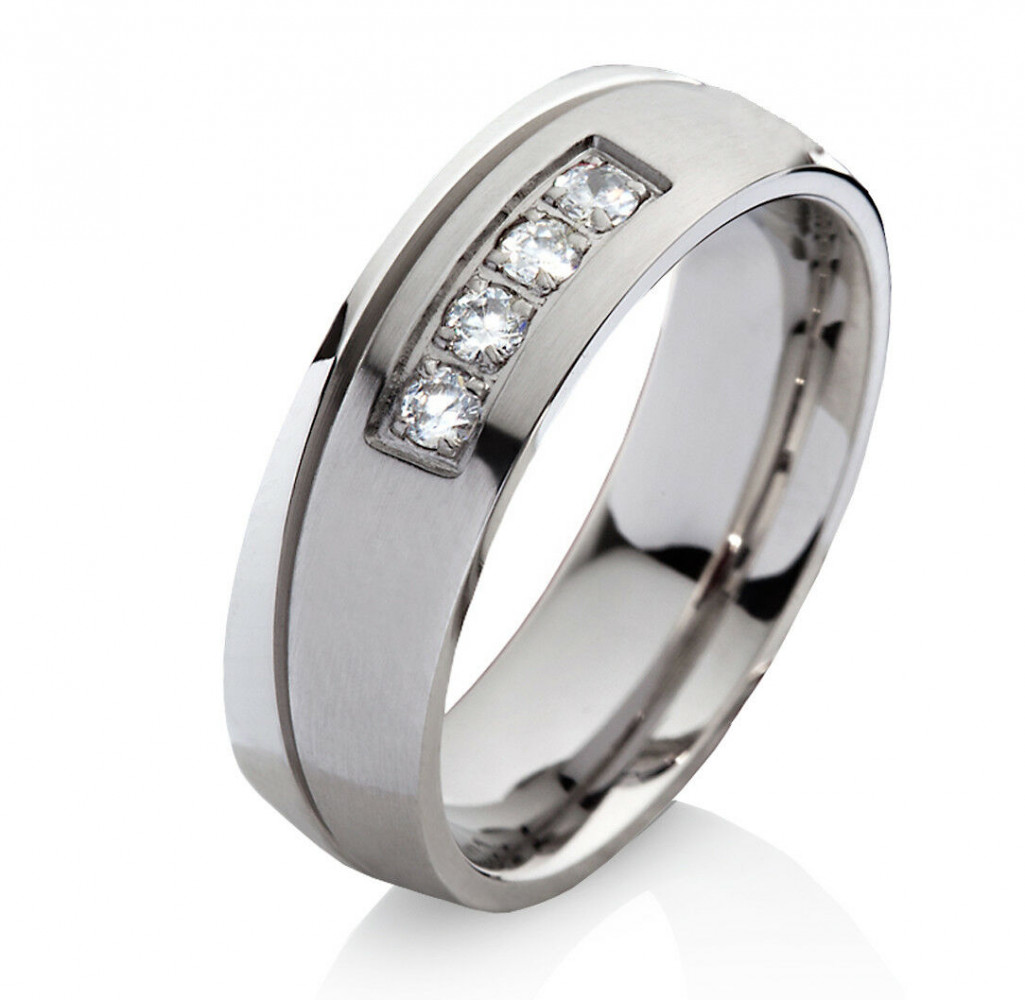 Edelstahlringe E142 mit Zirkonias und Gravur