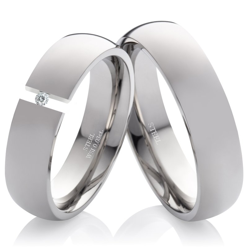 Die Oberfläche dieser Edelstahlringe ist sehr hochwertig verarbeitet. Beide 6mm breiten Partnerringe sind auf der Außenfläche Poliert und auf der Innenseite Poliert und bombiert. Der Ring für die Dame ist zusätzlich veredelt durch einen funkelnden runden 0,03ct Diamant. Auf dem Herrenring befindet sich kein Stein. Die Gravur kann auf der Innenfläche angebracht werden. Für die richtigen Worte stehen sieben Schriftarten zur Verfügung. Das Etui, in dem die Freundschaftsringe verschickt werden, kann auch sehr gut als Geschenkbox verwendet werden. Die Versandkosten innerhalb von Deutschland sind im Angebot inklusive.