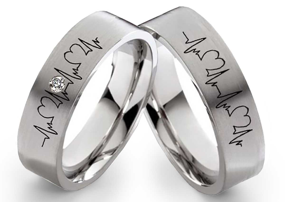 Zeigen Sie Ihrem Lieblingsmenschen, wie sehr er Ihnen am Herzen liegt – mit diesen eleganten Edelstahl-Ringen von Costina. Auf der mattierten Oberfläche ist ein EKG-Herzschlag eingraviert, der die Verbindung zwischen zwei Herzen symbolisiert. Der Damenring strahlt zusätzlich mit einem funkelnden Zirkonia oder Diamanten und macht jedes Handgelenk zum Blickfang. Beide Ringe sind innen bombiert für höchsten Tragekomfort und können mit einer persönlichen Gravur von bis zu 30 Zeichen individuell gestaltet werden – wahlweise in sieben stilvollen Schriftarten. Ob als Verlobungsringe, Trauringe oder Freundschaftsringe: Dieses Set vereint Qualität, Symbolkraft und Stil. Der Preis gilt für beide Ringe, inklusive kostenlosem deutschlandweitem Versand und edlem schwarzen Etui – perfekt, um Liebe stilvoll zu schenken.Ringmodell: E049