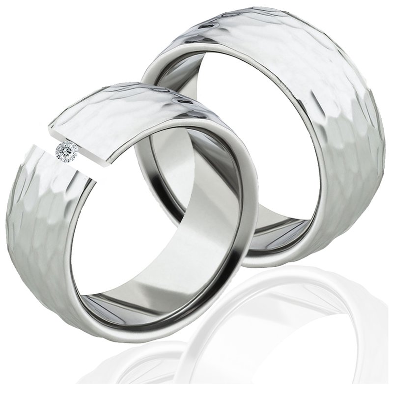 Elegante Edelstahl Partnerringe LUC48 mit Diamant und individueller Gravur