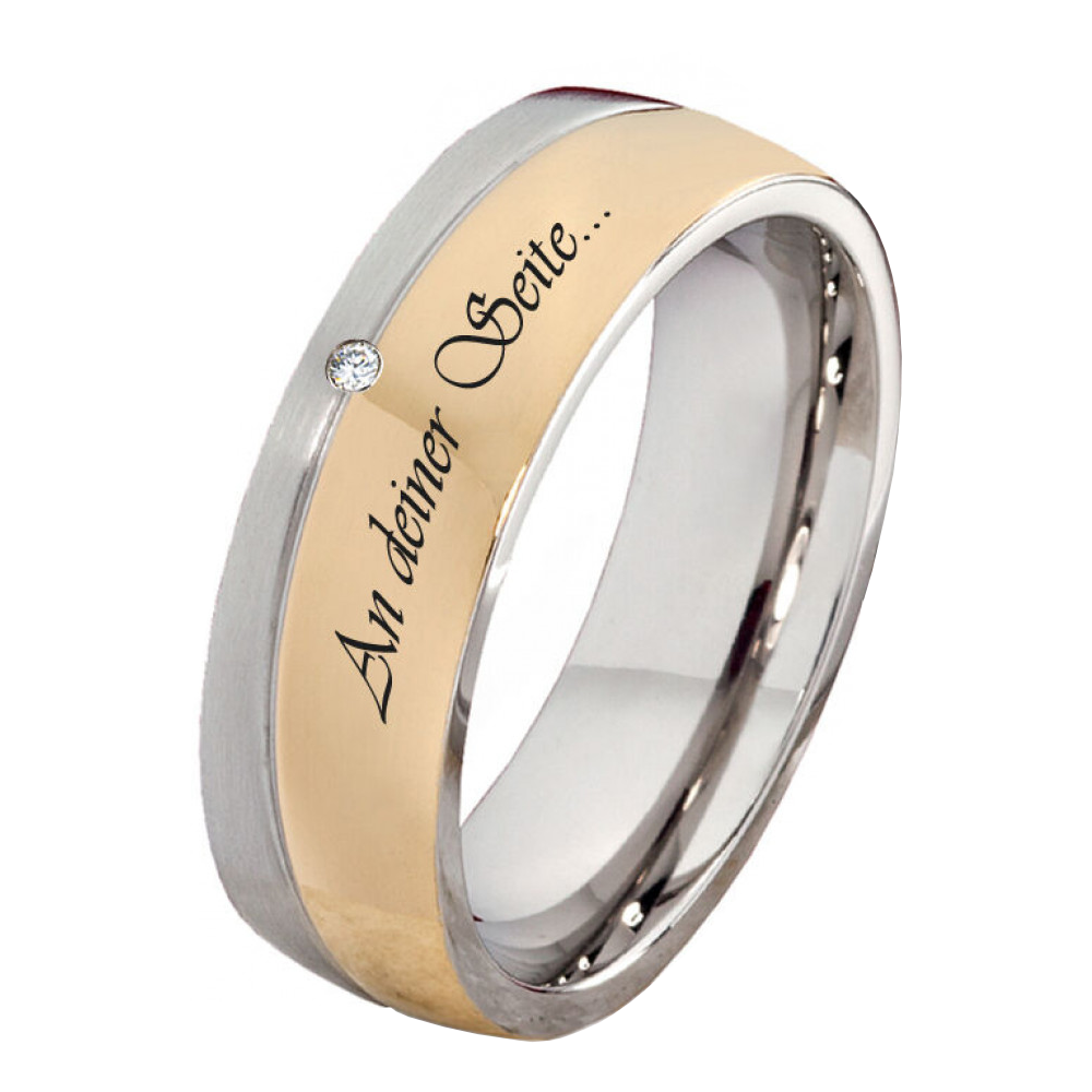 Startseite » Edelstahlringe » Edelstahlringe mit Stein » Edelstahlringe P304 mit Gelbgoldfarbiger Beschichtung und Gravur