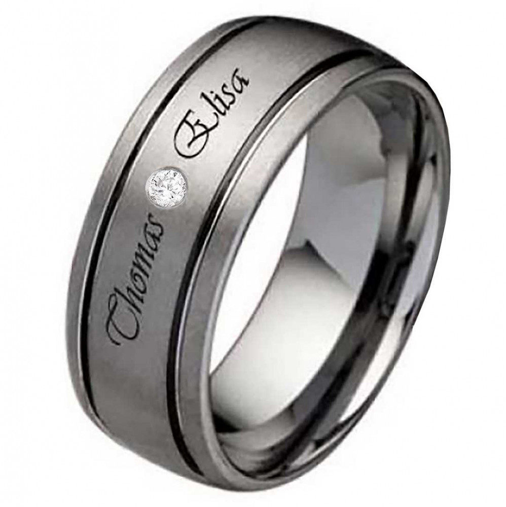 Partnerringe Wolframringe PW116 mit Zirkonia und Außengravur