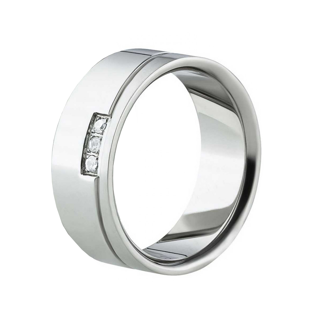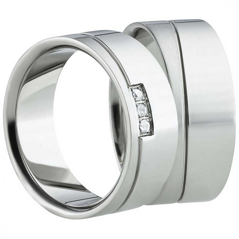 Mit diesen Partnerringen kann man seine Verbindung zu einem anderen Menschen ganz wunderbar zum Ausdruck bringen. Diese Ringe sind beide massiv und die Breite beträgt ca. 8,0 mm. Die Ringaußenfläche ist poliert und mattiert. Drei funkelnde Zirkonias, die weiß und rund sind, schmücken den Damenring. Die Steine haben eine Größe von jeweilss ca. 1,0 mm. Auf der Innenfläche der Edelstahlringe, die bombiert und poliert ist, kann eine kostenfreie Gravur angebracht werden. Zur Verfügung stehen dafür 30 Zeichen sowie sieben verschiedene Arten von Schriften. Die Zustellung erfolgt in einem schönen schwarzen gratis Etui und ist innerhalb von gesamt Deutschland kostenfrei.