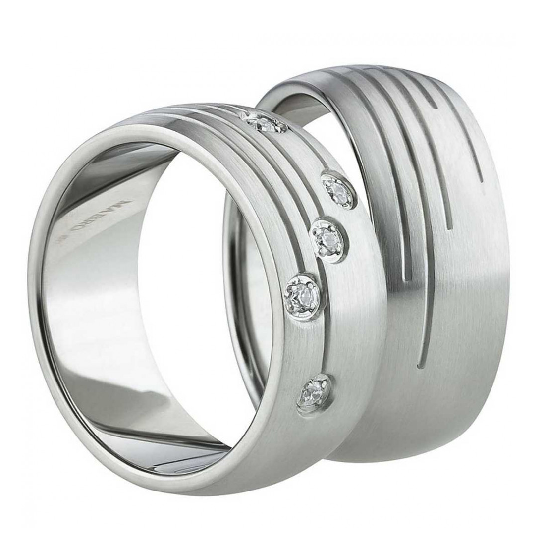 Eine Augenweide sind diese Partnerringe aus Edelstahl durch die verschieden lange Glanzrillen auf der Ringoberfläche außen. Diese ist mattiert und die Innenfläche ist poliert und bombiert. Die Edelstahlringe sind massiv und ca. 8,5mm breit. Zusätzlich zu den wunderschön eingearbeiteten Glanzrillen schmücken den Damenring fünf Steine. Dabei handelt es sich um runde weiße jeweilss ca. 1,0 mm große Zirkonias. Der Herrenring ist ohne Stein. Für die Gravur, die auf der Ringinnenseite angebracht werden kann, stehen sieben Schriftarten und 30 Zeichen zur Auswahl. Deutschlandweit sind die Kosten für die Zustellung im Angebot schon enthalten. Im Lieferumfang enthalten ist ein wunderschönes schwarzes gratis Etui.