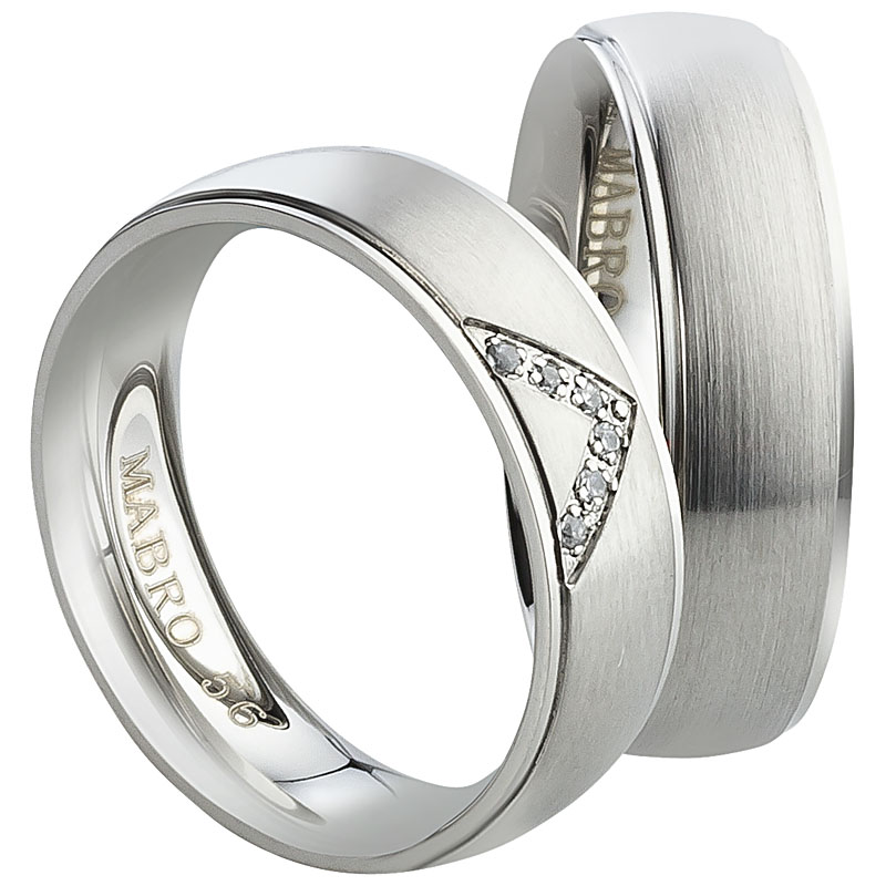 Sehr moderne Partnerringe mit sechs weißen Steinen