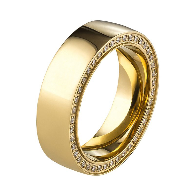 Wenn Sie Partnerringe suchen, die aus Edelstahl sind und sowohl innen als auch außen komplett goldfarben beschichtet, dann sind diese Ringe absolut richtig. Sie haben eine Breite von etwa 6,0 mm und sind massiv. Bei den 29 Steinen handelt es sich um weiße runde Zirkonias, die jeweilss eine Größe von etwa 1,5mm haben. Diese Steine sind in den Damenring eingearbeitet. Auf der Ringinnenfläche, die abgerundet/ bombiert und poliert ist, steht die Fläche für eine kostenfreie Gravur zur Verfügung. Verschickt werden die Edelstahlringe in einer schicken schwarzen Box und es werden keinerlei Kosten für das Zustellen innerhalb von Deutschland angerechnet.