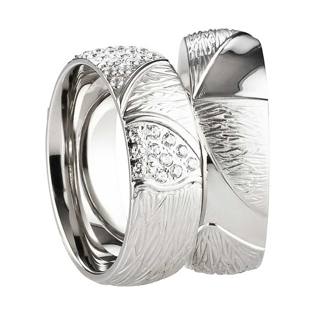 Eine ganz außergewöhnlich schöne Optik, die alles andere als durchschnittlich ist, haben diese Partnerringe aus Edelstahl und sind zudem noch günstig. Die Ringoberfläche ist poliert und mattiert. Die Breite der Ringe beträgt etwa 6,0 mm. Verziert wird der Damenring mit ganz zauberhaften 33 weißen runden Zirkonias. Dadurch ist dieser Ring ein absoluter Eyecatcher. Die Steine haben jeweilss eine Größe von circa 1,5mm. Die Gravur auf der Ringinnenfläche ist kostenfrei. Diese Seite ist bombiert/ abgerundet und poliert. Für die deutschlandweite gratis Auslieferung werden die Edelstahlringe in einem kostenfreien Etui in Schwarz verpackt.
