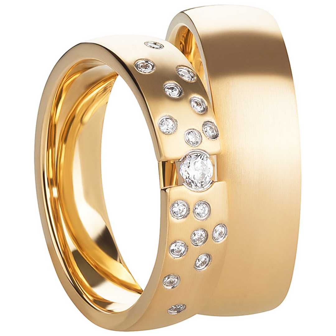 Extrem geschmackvolle Partnerringe mit 17 Steinen und gratis Gravur