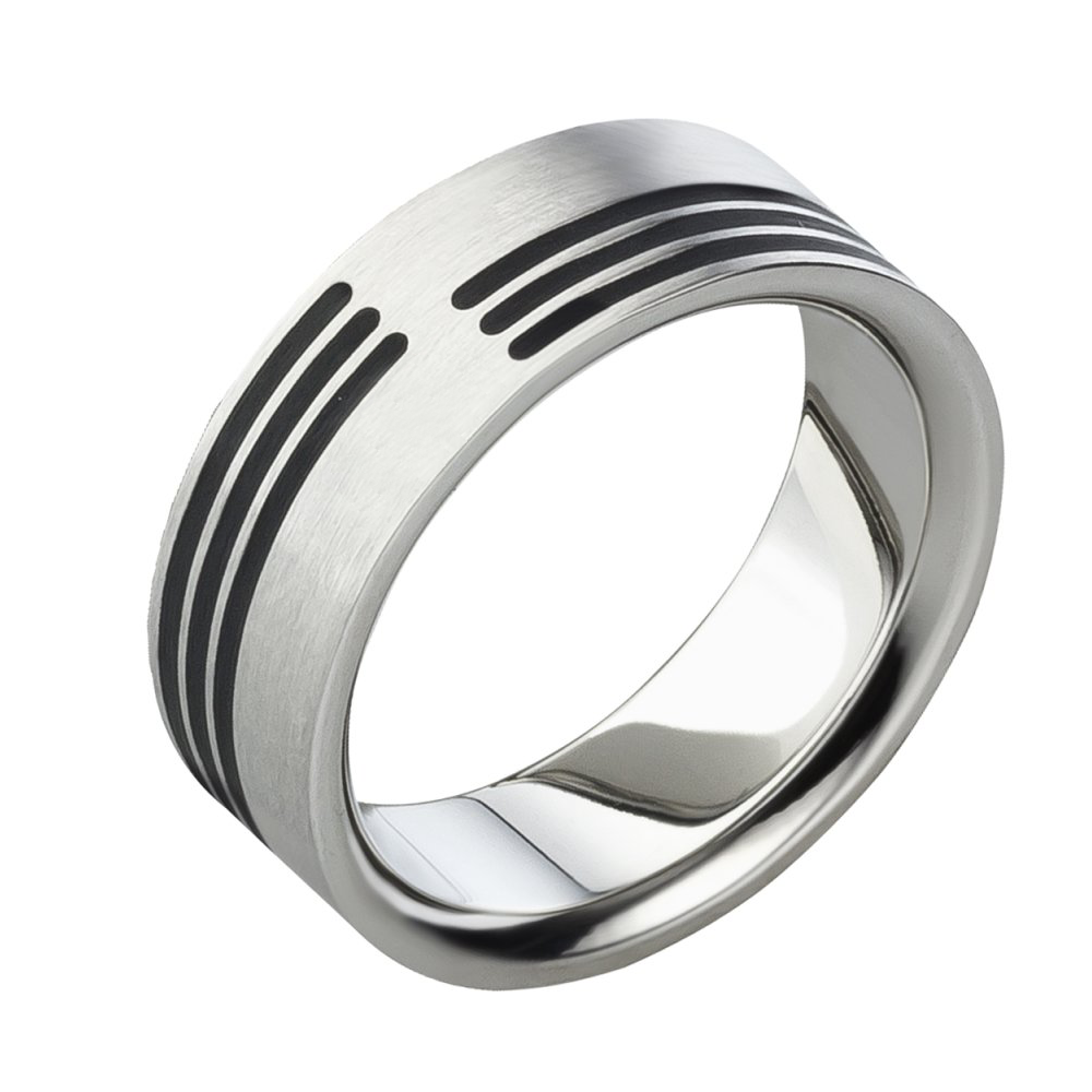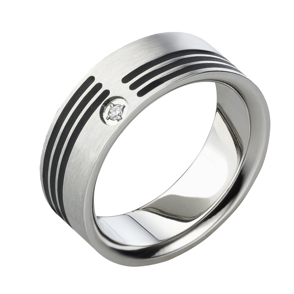 Extravagante Titanringe mit schwarzer Einlage und Stein