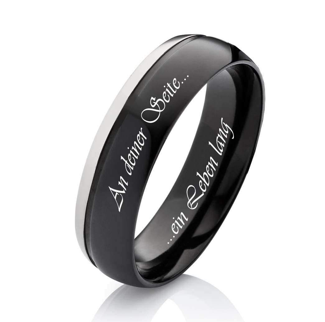Diese sehr beliebten Ringe aus dem Hause Rings-and-More sind 6mm breit und haben eine poliert und teilbeschichtete Oberfläche. Die Innenseite der wunderschönen Ringe ist poliert und leicht abgerundet, was zu einem angenehmen Tragen führt. Die außenfläche ist durch die eingearbeitete Linie ein richtiges Highlight. außen kann eine schöne Liebesbotschaft gelasert werden. Die Ringe werden deutschlandweit kostenlos versendet und zusätzlich wird ein Ringmass beigefügt. Diese Ringe werden als Partnerringe, Eheringe, Freundschaftsringe oder auch als Verlobungsringe getragen.