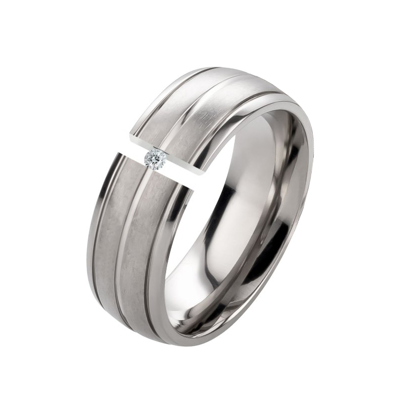 Klassisch Titenringe mit Zirkonia oder Diamant LUC32 gratis Gravur