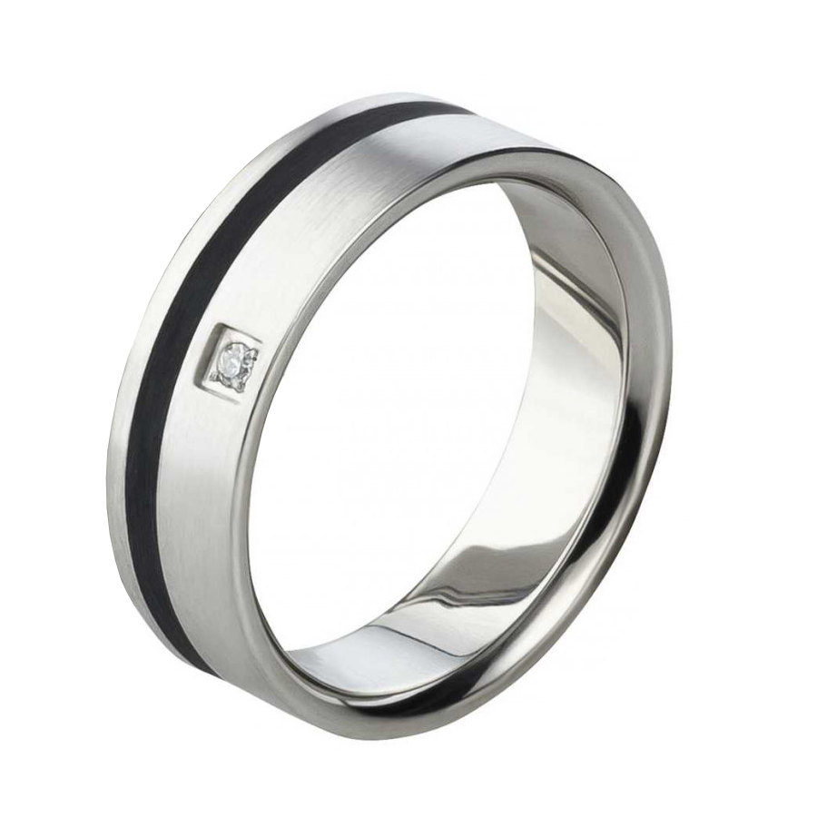 Wunderschöne Titanringe mit schwarzer Glanzrille und Zirkonia