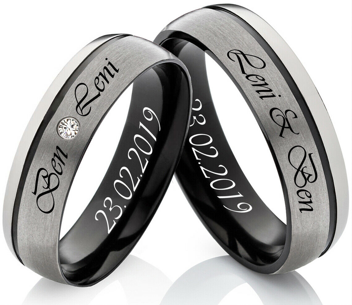 Die Breite dieser Partnerringe aus Titan beträgt 6mm. Die Außenfläche ist schwarz Beschichtet sowie poliert. Der Ring für die Dame hat ein zusätzliches Highlight. In diesen Titanring ist ein runder 1,5mm großer Zirkonia oder ein 0,02ct Diamant eingearbeitet. Als weiteres Zeichen der Verbundenheit kann auf der polierten und abgerundeten Innenfläche eine gratis Botschaft eingraviert werden. Diese Nachricht kann jeder ganz nach seinen Wünschen gestalten. 30 Zeichen sowie sieben Schriftarten stehen dafür zur Verfügung. Im Lieferumfang enthalten ist eine schwarze Box. Für den deutschlandweiten Versand werden keine weiteren Kosten verrechnet.