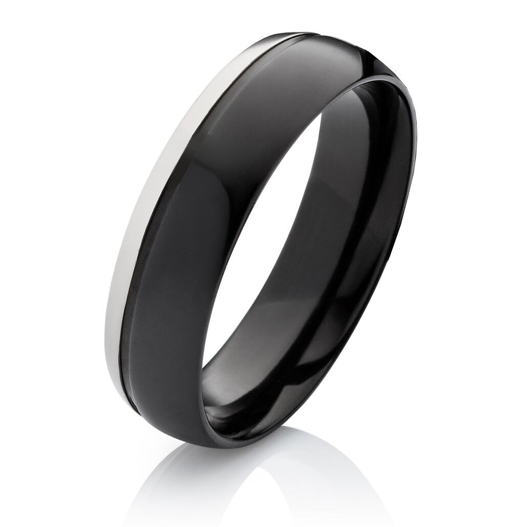 Elegante schwarze Titanringe T166 mit Steinbesatz