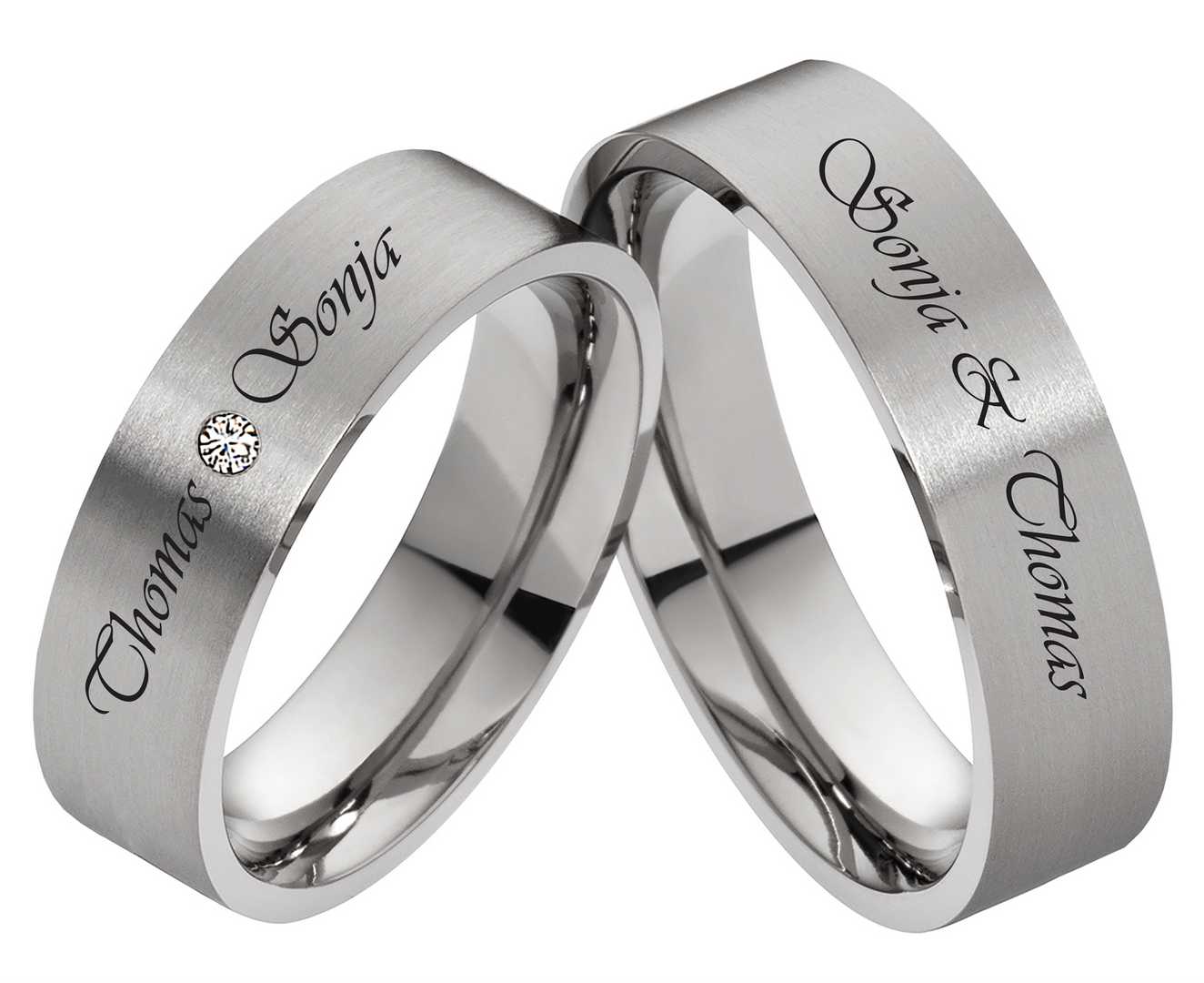 Titanringe T077 mit Zirkonia und individueller Außengravur