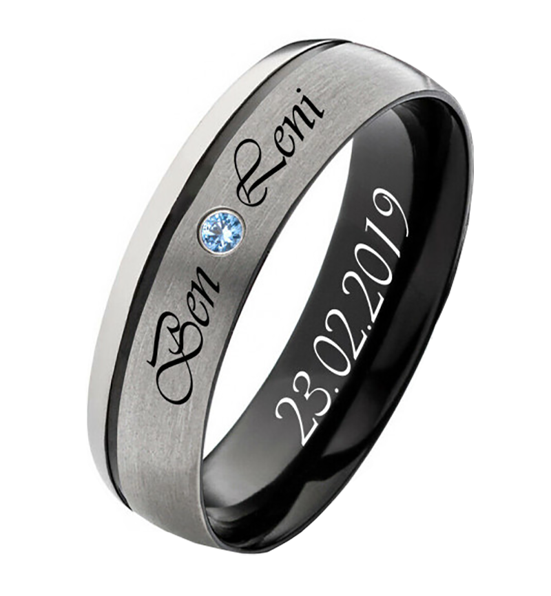 Initialen in Titanringe T201 Topas Blau mit Gravur