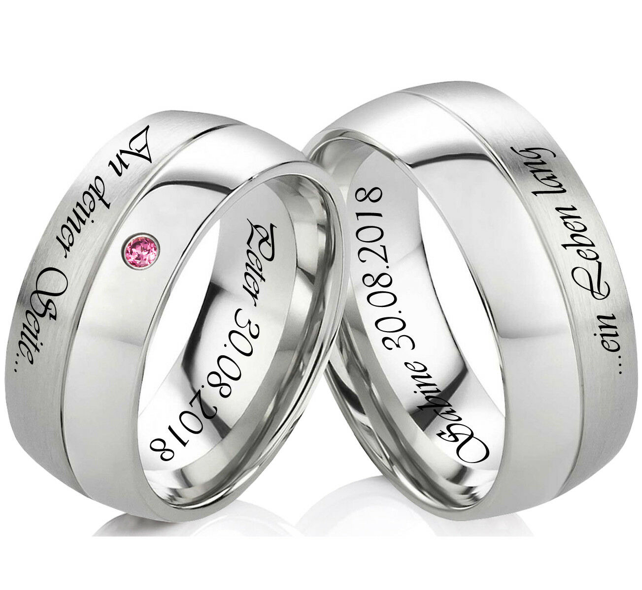 Nicht nur zum Verlieben sind diese Ringe, sondern auch eine Zeichen Ihrer Liebe zueinander. Die Edelstahlringe haben ein besonderes Design, wie auch der gefasste Zirkonia Raspberry Steine. Die Ringe sind 8mm breit und mit einer glanzrille in der Mitte unterteilt. Die Ringe können innen wie außen nach Ihren Vorgaben graviert werden. Es wird auch ein Etui mitgesendet. Diese Ringe können als Partnerringe, Verlobungsringe, Freundschaftsringe oder auch als Eheringe getragen werden.
